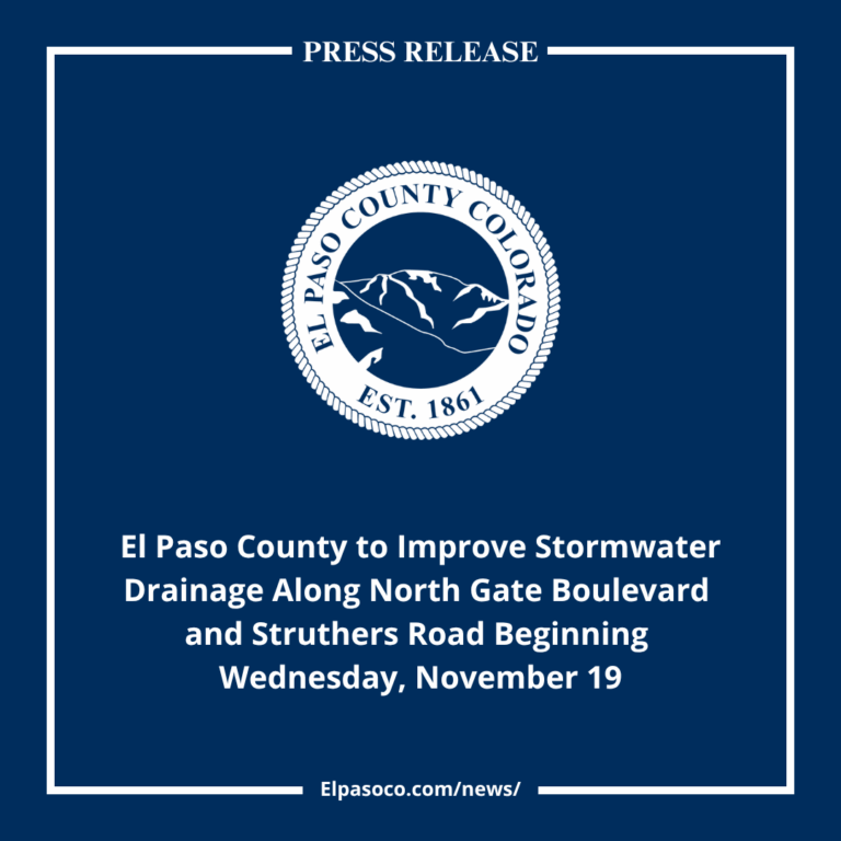 November 18, 2025 – El Paso County will improve stormwater drainage by constructing over 3,000 feet of new stormwater pipes along North Gate Boulevard, between I-25 and Struthers Road. Stormwater improvements will also include constructing a new permanent water quality pond between the north and south corridors of I-25, on the south side of North…