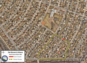 October 22, 2025 – El Paso County will replace both the east and west cross pans on Del Brook Drive at the Del Brook Drive and Ithaca Street intersection. The project is scheduled to begin on Wednesday, October 22, and is expected to be completed in five working days, weather permitting.